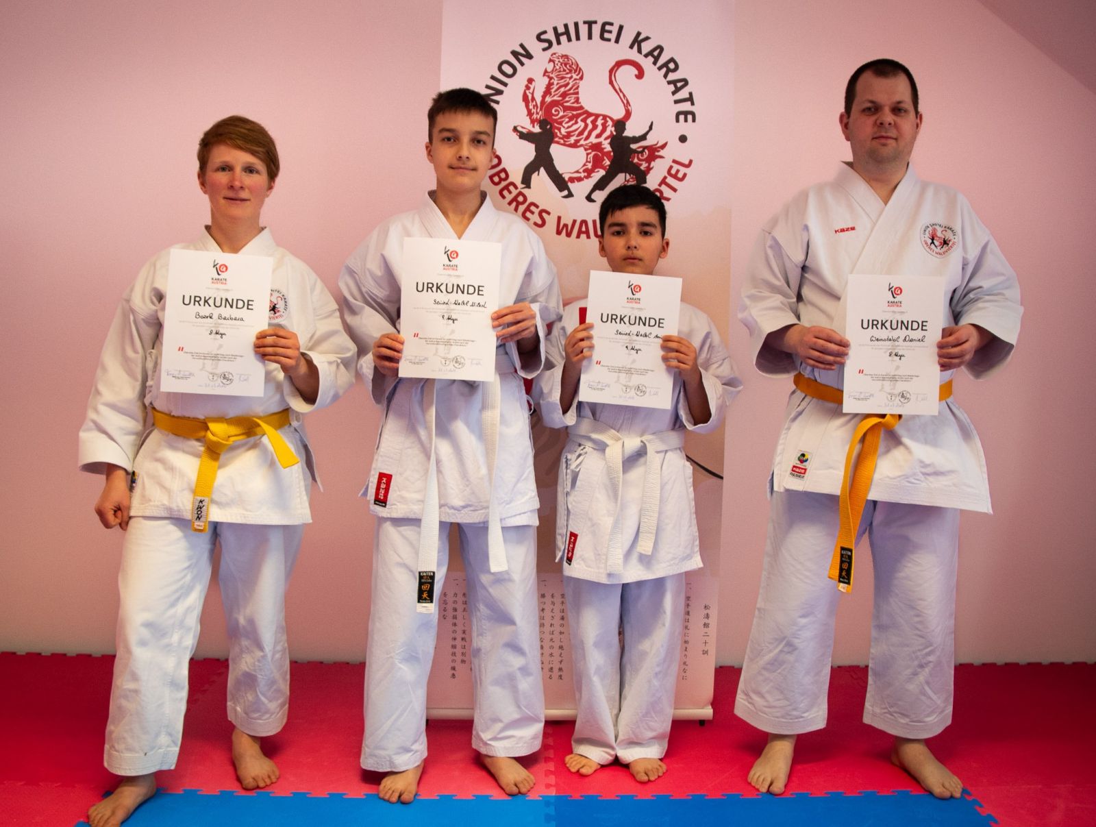 Den Abschluss der Prüfung bildeten für alle 4 Karateka der theoretische Teil mit Fragen rund um unsere Kampfkunst.